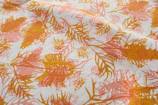 Linen Fabric - Grevilleas in Melon and Tumeric