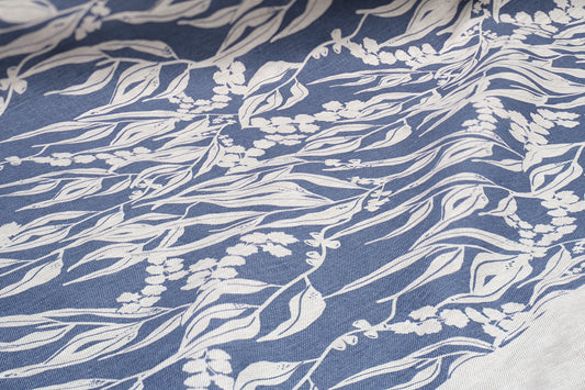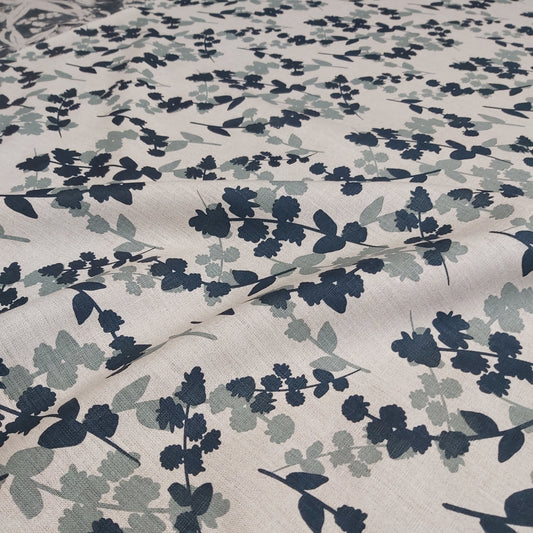 Linen Fabric - Wattle Sprigs in Storm and Indigo