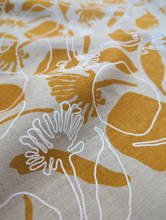 Linen Fabric - Grevilleas in Melon and Tumeric