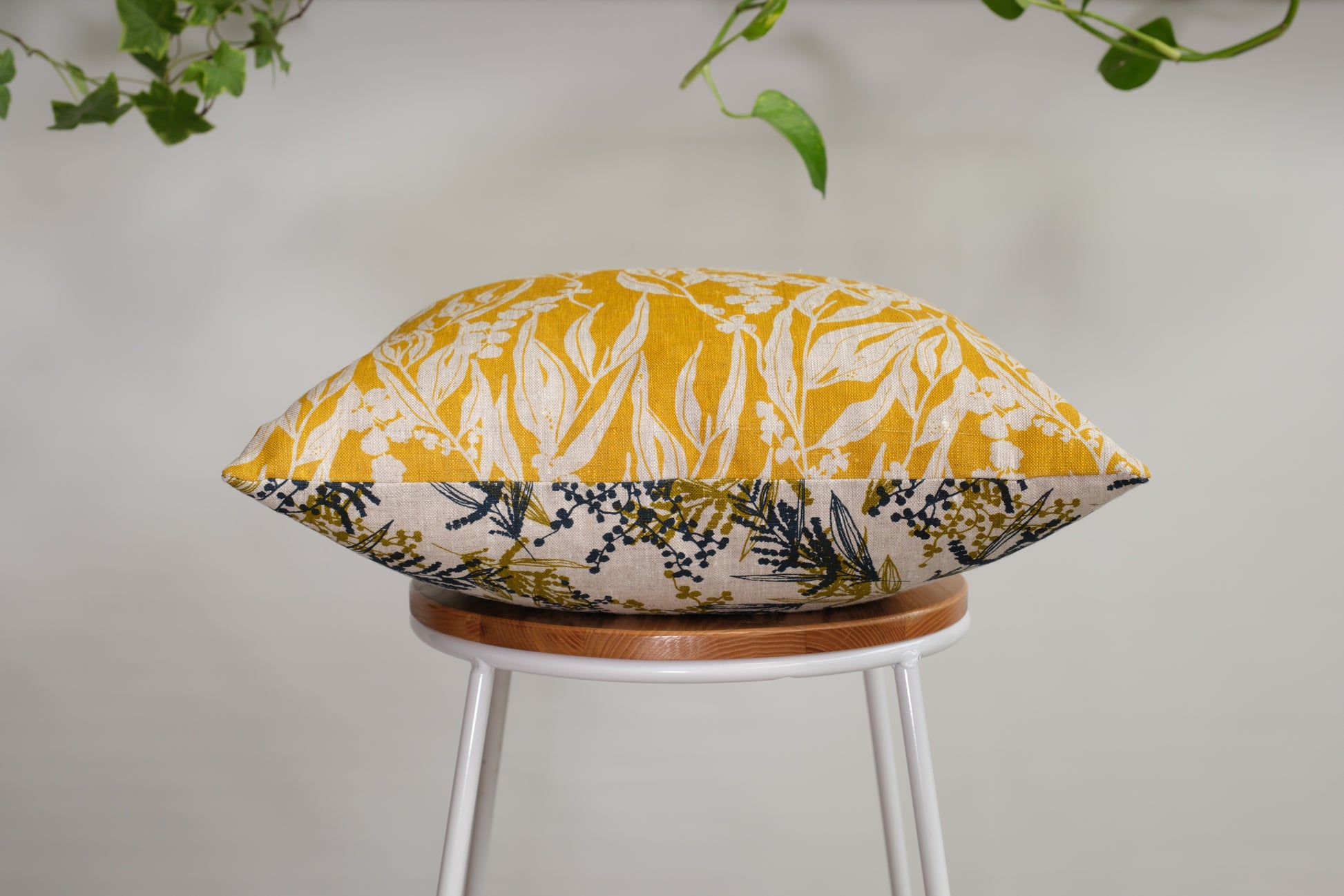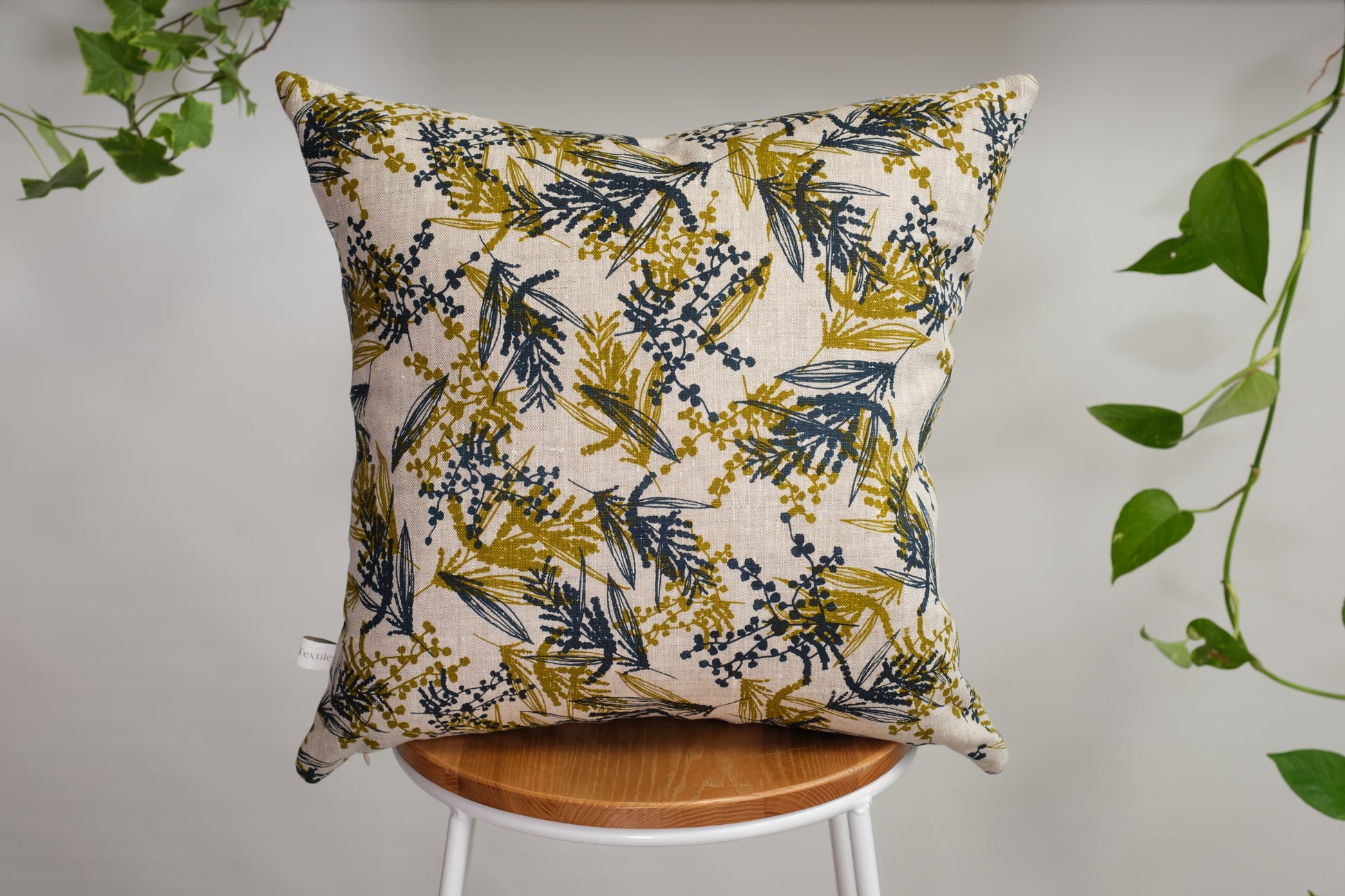 Linen Cushion Cover Featuring Nuts about Wattle and Mixed Wattle
