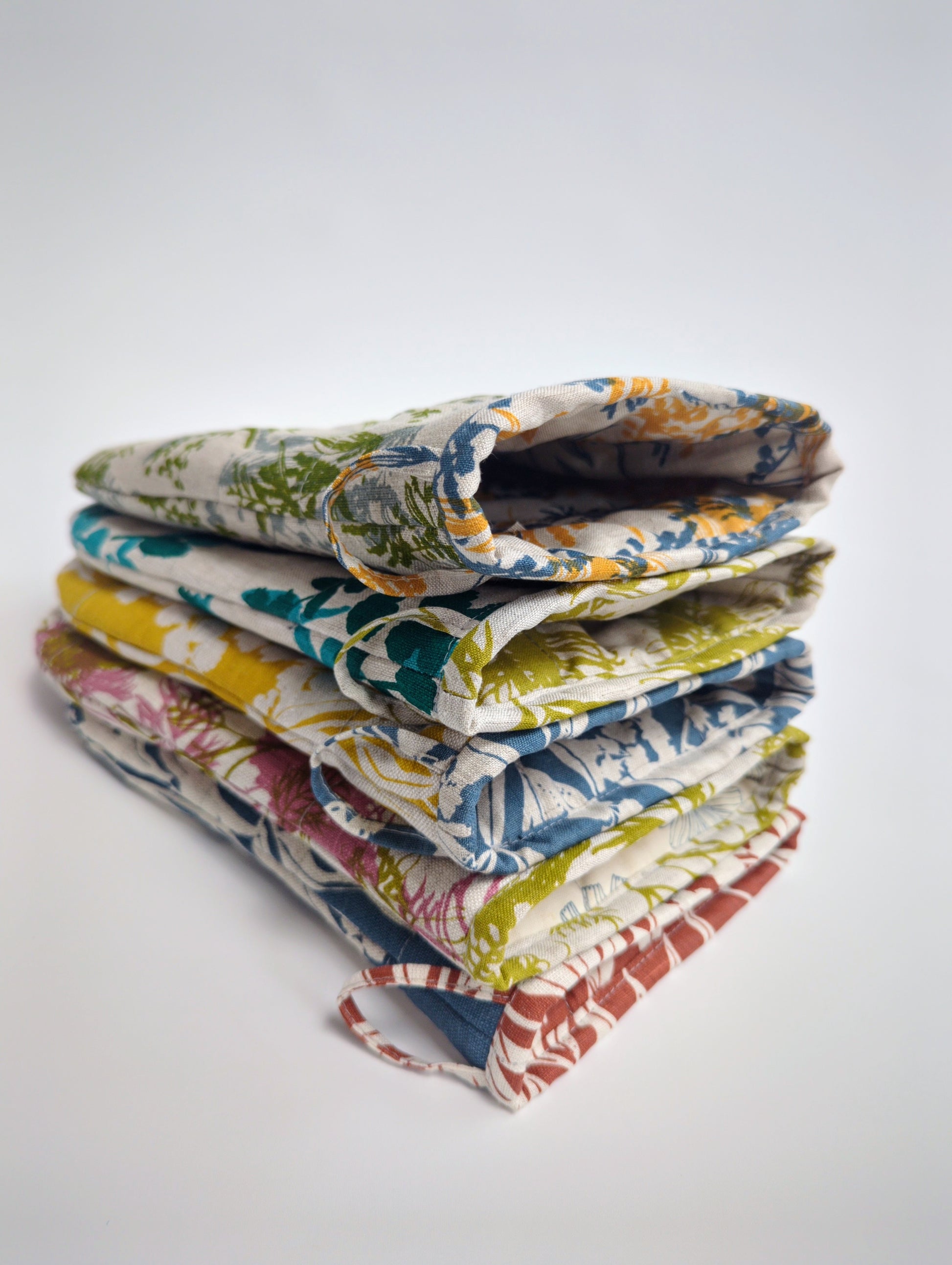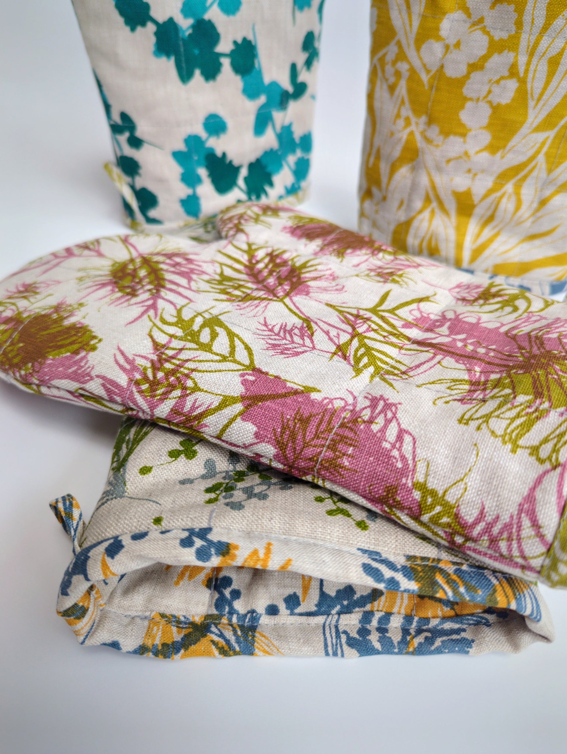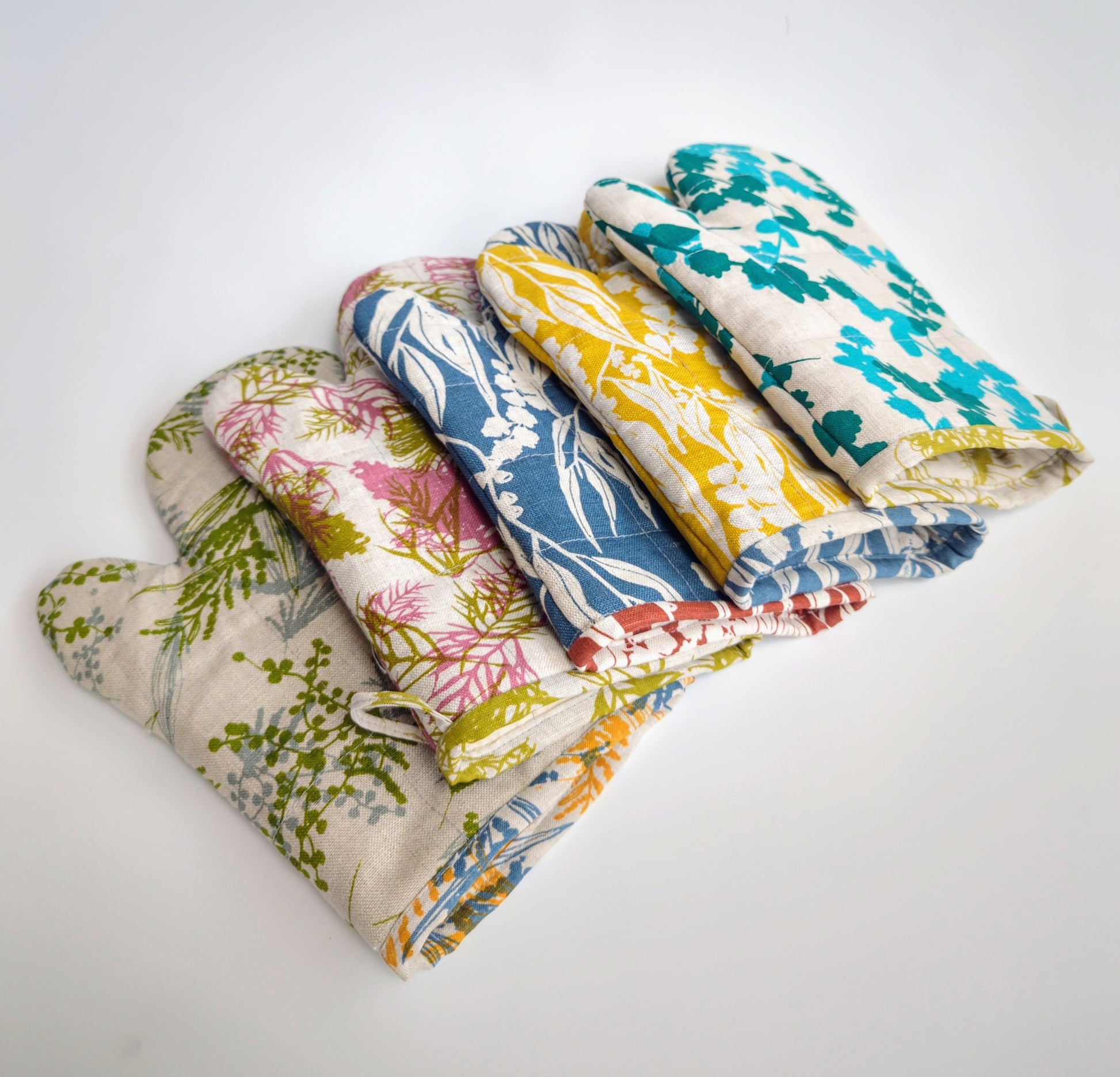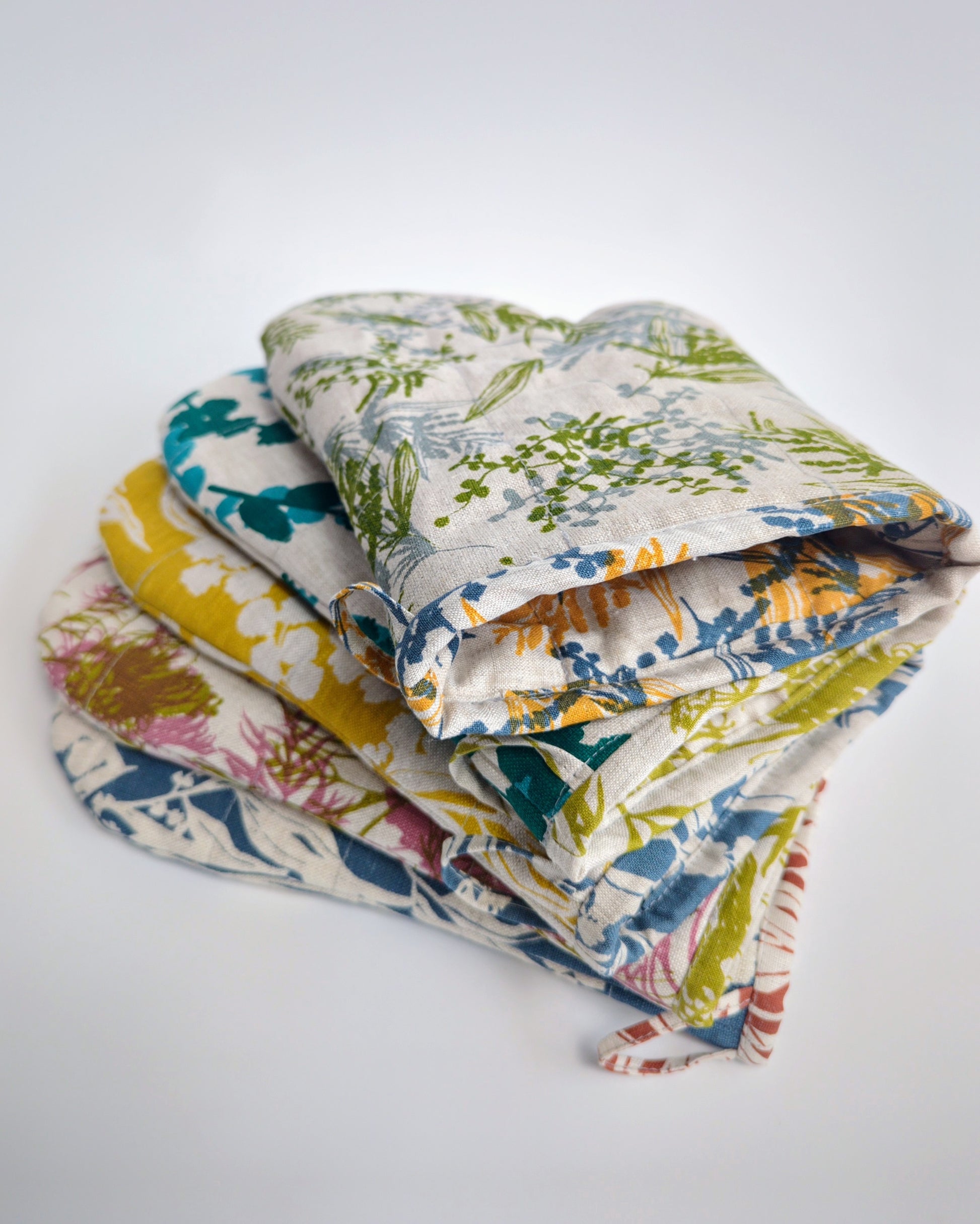 Built tough with layers of cotton batting and linen lining, they'll keep your hands safe from serious heat while you whip up culinary masterpieces. The handy loop means they're always within reach, hanging prettily on your kitchen wall or oven door. Practical, playful, and proudly Australian designed and made—the perfect companion for any kitchen.